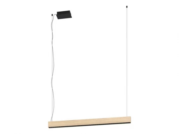 Eglo Termini is een moderne hanglamp met een behuizing van hout of zwart staal en een brede geïntegreerde LED-lamp. Ideaal als je een breed en helder lichtveld wilt, bijvoorbeeld boven een grote tafel of bureau. Deze plafondlamp is ook beschikbaar in een bredere uitvoering, met een breedte van 159 cm.