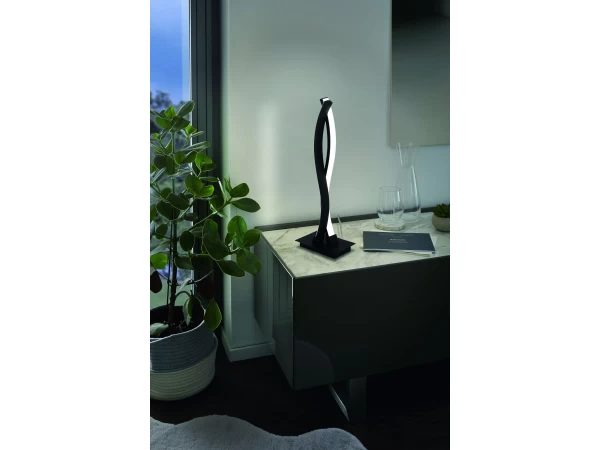 Deze uitvoering van Eglo Lasana is een moderne tafellamp met een unieke uitstraling. Deze tafellamp vormt ongetwijfeld een blikvanger in je interieur! Met zijn behuizing in zwart staal en geïntegreerde ledverlichting beantwoordt deze moderne tafellamp aan de laatste interieurtrends. Deze lamp komt dan ook het best tot zijn recht in een modern interieur.