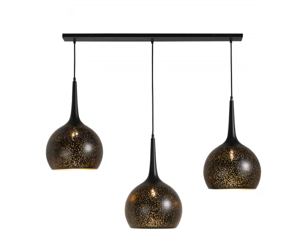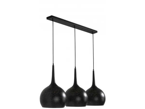 Deze Arjen hanglamp van Coco Maison zorgt dankzij de gaatjes in het metaal voor een bijzonder lichteffect tegen de muur en het plafond. De drie lampen zijn bevestigd aan een zwarte plafondplaat en zijn dimbaar. In dezelfde collectie vind je bij ons ook nog een enkele andere modellen, zoals onder andere een tafellamp en een vloerlamp.
