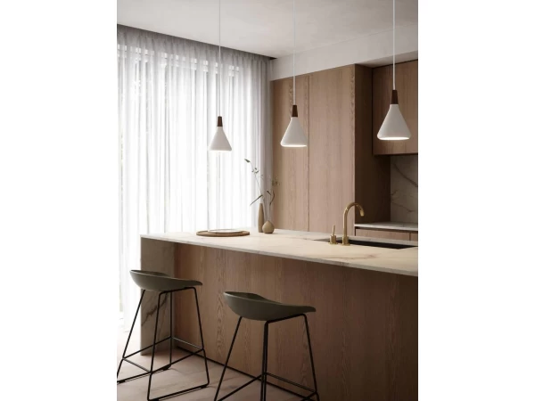Nori is een familie plafondlampen die bij elkaar staan zonder onafscheidelijk te zijn. Lijnen, vormen en oppervlakken zijn harmonisch en geven alle ontwerpen met een onmiskenbaar gemak. Het ontwerp is rechtopstaand en verfijnd in zijn exclusieve FSC-gecertificeerde geoliede walnootblad, één van de kenmerken van de Nori-collectie. Deze Scandinavische hanglampen passen gemakkelijk in een reeks interieurcontexten – met slimme looks in een mix van kleuren en maten.