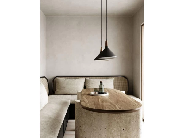 Nori is een familie plafondlampen die bij elkaar staan zonder onafscheidelijk te zijn. Lijnen, vormen en oppervlakken zijn harmonisch en geven alle ontwerpen met een onmiskenbaar gemak. Het ontwerp is rechtopstaand en verfijnd in zijn exclusieve FSC-gecertificeerde geoliede walnootblad, één van de kenmerken van de Nori-collectie. Deze Scandinavische hanglampen passen gemakkelijk in een reeks interieurcontexten – met slimme looks in een mix van kleuren en maten.
