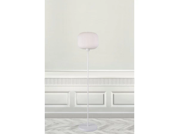 Vloerlamp Milford van Nordlux brengt een gezellige sfeer in je huiskamer. De organische vormen creëren elegantie, terwijl het opaal witte glas de ruimte verlicht met een zacht en warm licht. Wit is één van de kernkleuren in een Scandinavisch interieur. Met zijn basis in wit metaal draagt de Milford vloerlamp ongetwijfeld bij aan deze trend.