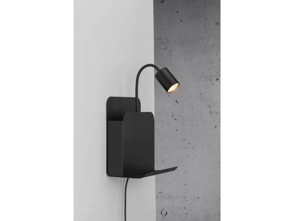 De Roomi wandlamp is zowel een functionele lamp, een tijdschriftenvak als een praktische plank waar je je belangrijkste benodigdheden in kwijt kunt. De lamp kan eenvoudig worden gedraaid voor een gericht licht, en je kunt je smartphone of ander apparaat opladen met de ingebouwde USB-poort die onder de plank is geplaatst. Perfect naast je bed of in de inkomhal om je telefoon en sleutels bij te houden.