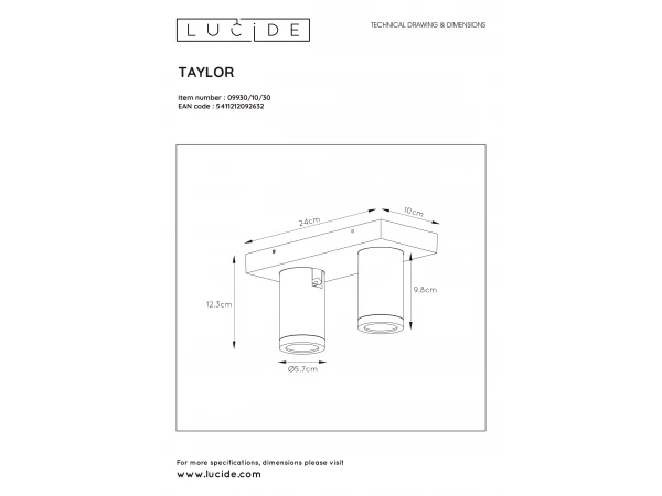 - Lichtbron: 2 x GU10 LED, 5W, 230V, A+ (inbegrepen)
