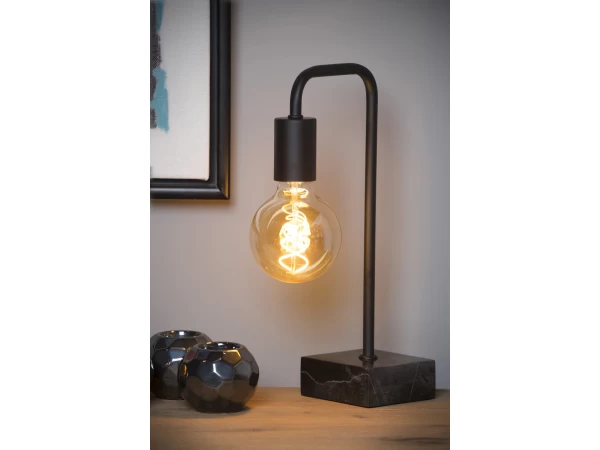 Waan je in de funky sixties of de roaring seventies met deze retro tafellamp. Lorin is de naam. Zijn minimalistische vormgeving geeft de materialen – hoogwaardig staal met een voet van tijdloos marmer – alle ruimte om te schitteren. Met een filamentlamp haal je het beste uit je nieuwe tafelgenoot. Aan- en uitzetten doe je eenvoudig met een schakelaar op het snoer. Lorin geeft een nostalgische toets aan je modern interieur, maar voelt zich ook helemaal thuis in een landelijke of industriële omgeving.