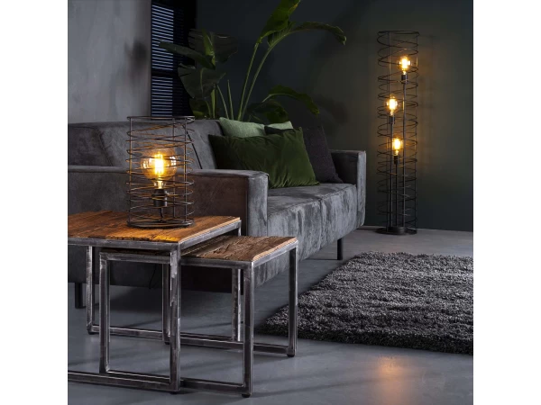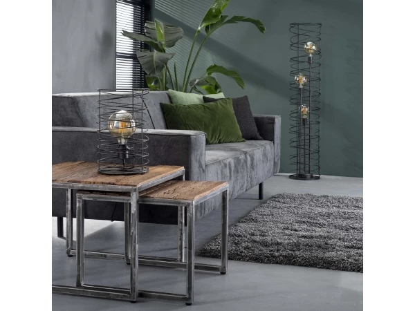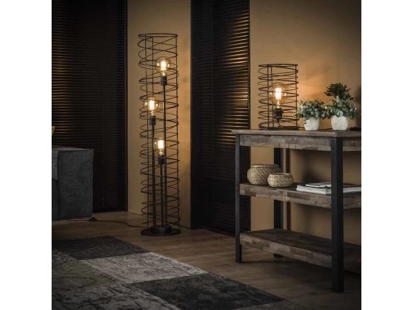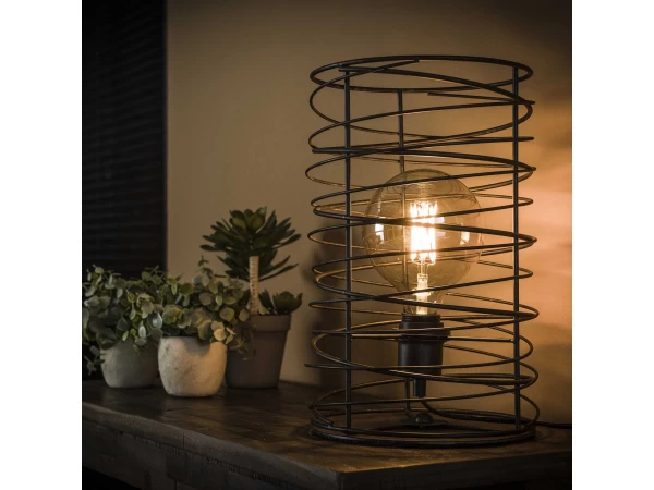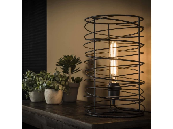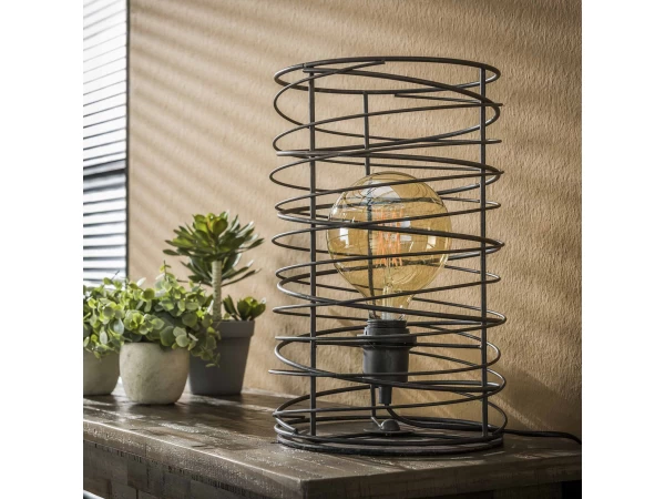 Deze tafellamp is uitgevoerd in een cilindervormige spiraal. Dit geeft de lamp een eigentijdse, trendy uitstraling. Deze authentieke lamp, afgewerkt in de kleur charcoal, is een echte must-have! Door het open armatuur komt de lichtbron zichtbaar tot zijn recht en wordt het licht mooi gedoseerd door de ruimte verdeeld. Er wordt aanbevolen een LED lichtbron te gebruiken. Deze tafellamp maakt deel uit van een serie, bestaande uit een hanglamp, een vloerlamp en een tafellamp.