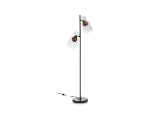 Vloerlamp Skylar past perfect in elk interieur, door de mooie balans tussen de materialen in glas en metaal. De lamp is afgewerkt met bollen in houtlook en 2 moderne lampenkappen in antraciet. Door de draaidimmer kan het licht worden aangepast naar de gewenste sfeer. De lamp is ook verkrijgbaar als wand-, tafel- of hanglamp.