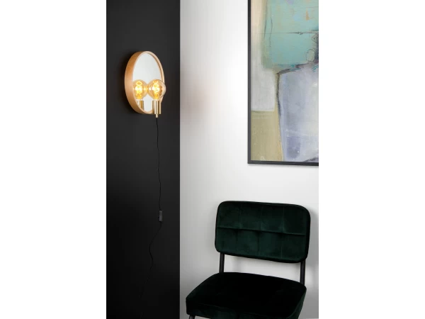Reflex, de naam zegt het al. Zo reflecteert deze wandlamp het licht in de kamer. Deze spiegellamp is een mooie eyecatcher van hout voor een extra warme touch. De spiegel heeft een diameter van 31 centimeter en de complete armatuur is 21 centimeter dik. Een compact formaat, ideaal voor Scandinavische, moderne of landelijke interieurs. Je zet de lamp eenvoudig aan en uit met een schakelaar.